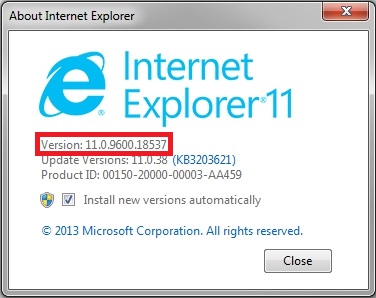 2. Se mostrará la versión actual del navegador. Para que la entrevista de HireVue transcurra de forma óptima, debería ser la versión 11.0. De no ser así, visita este enlace para descargar la última versión de Internet Explorer.