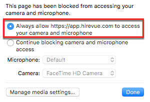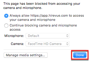 次の手順を実行して、HireVue にカメラとマイクへのアクセスを許可します。