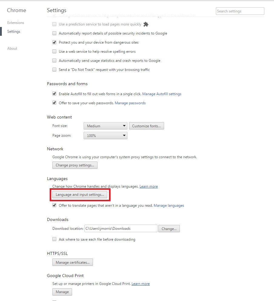 3. Przewiń w dół do sekcji Języków i wybierz Ustawienia języka wprowadzenia danych…