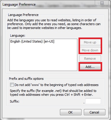 Jeśli żądanego języka nie ma na liście, możesz użyć przycisku Dodaj znajdującego się w dolnej części pola, aby dodać ten język, a następnie przenieś go na górę listy.